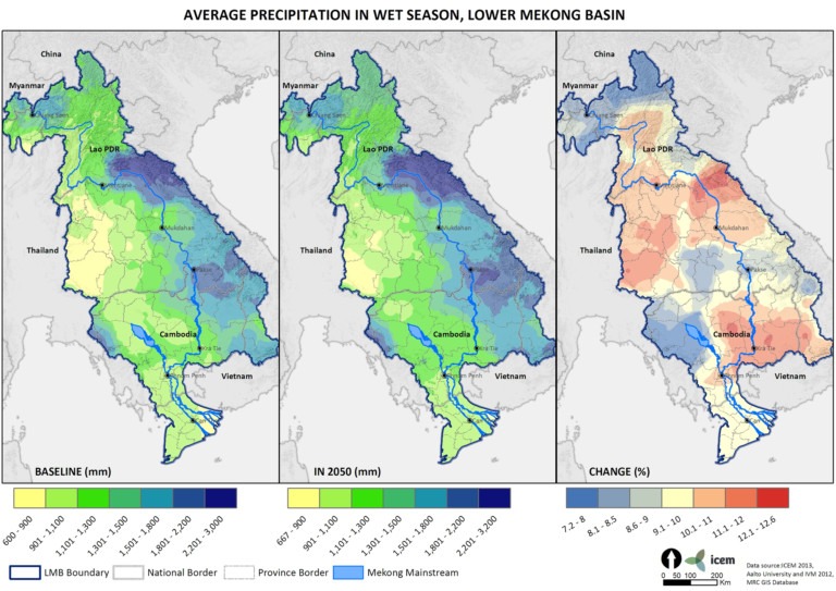 These maps were produced as part of a three-year research program, MK3: Optimising Cascades or Systems of Reservoirs in Small Catchments. The project took place from 2010 and 2013 in two river basins, tributaries of the Mekong – the Nam Theun/Nam Kading in Lao PDR and the Sesan River in Viet Nam and Cambodia, divided into the Upper Sesan and the Lower Sesan respectively.