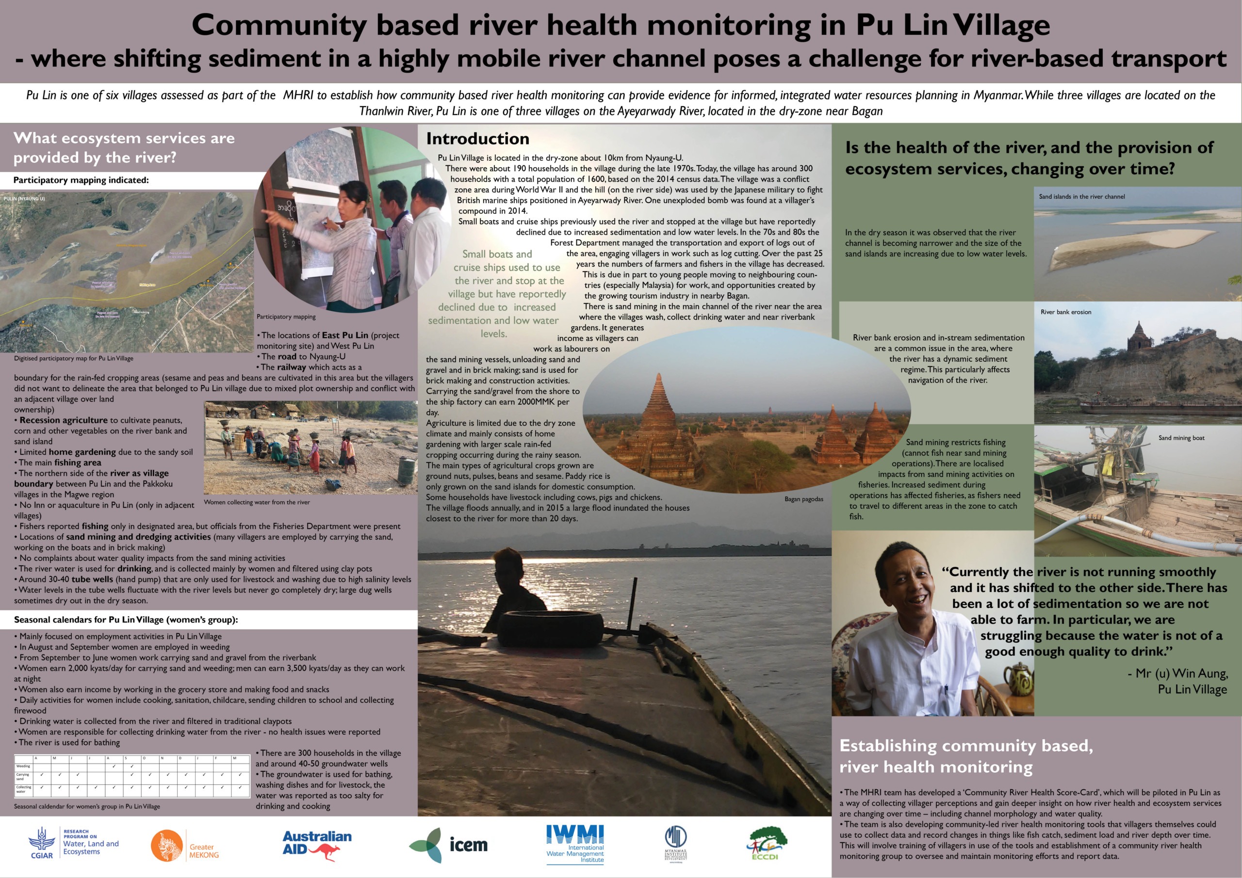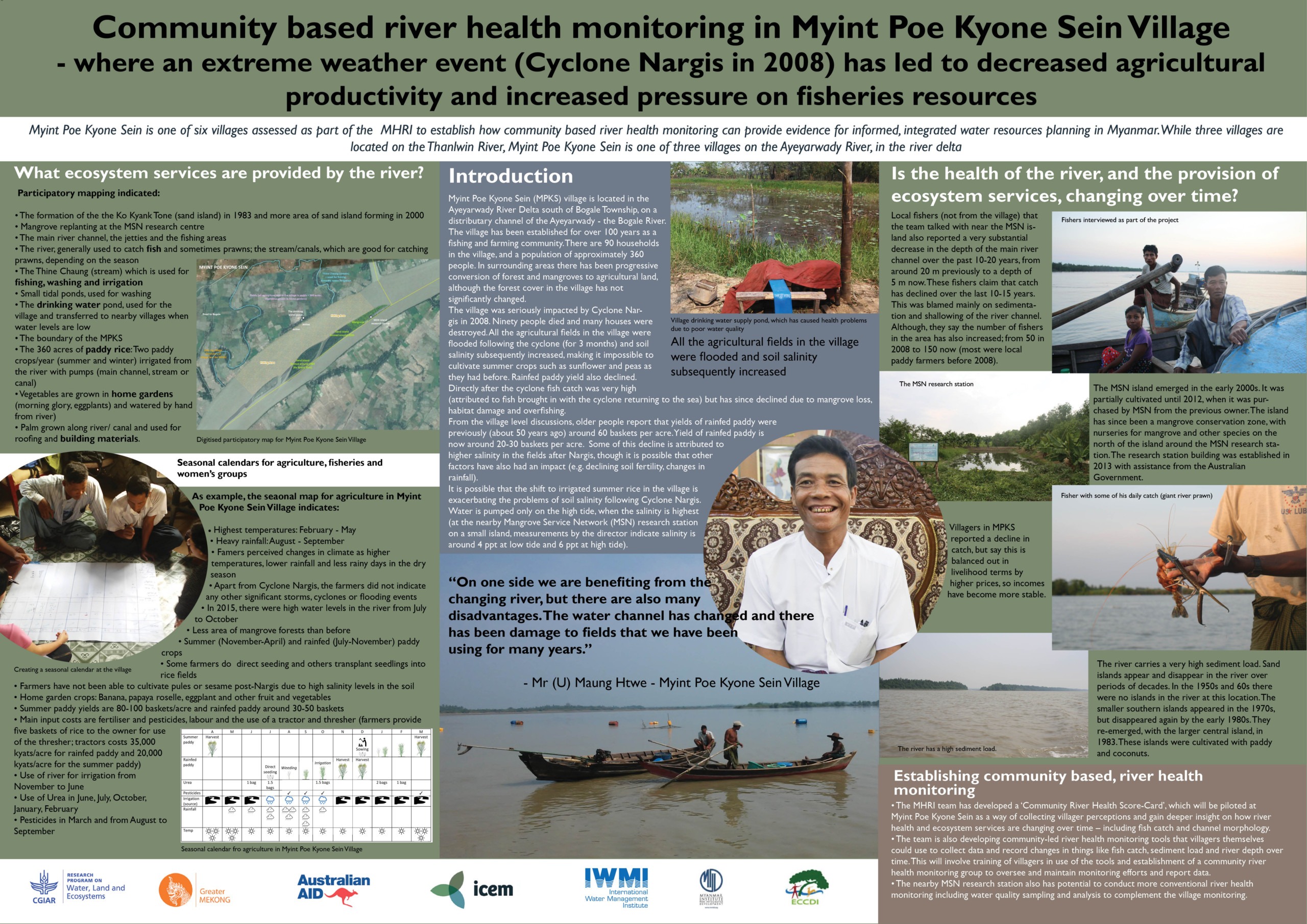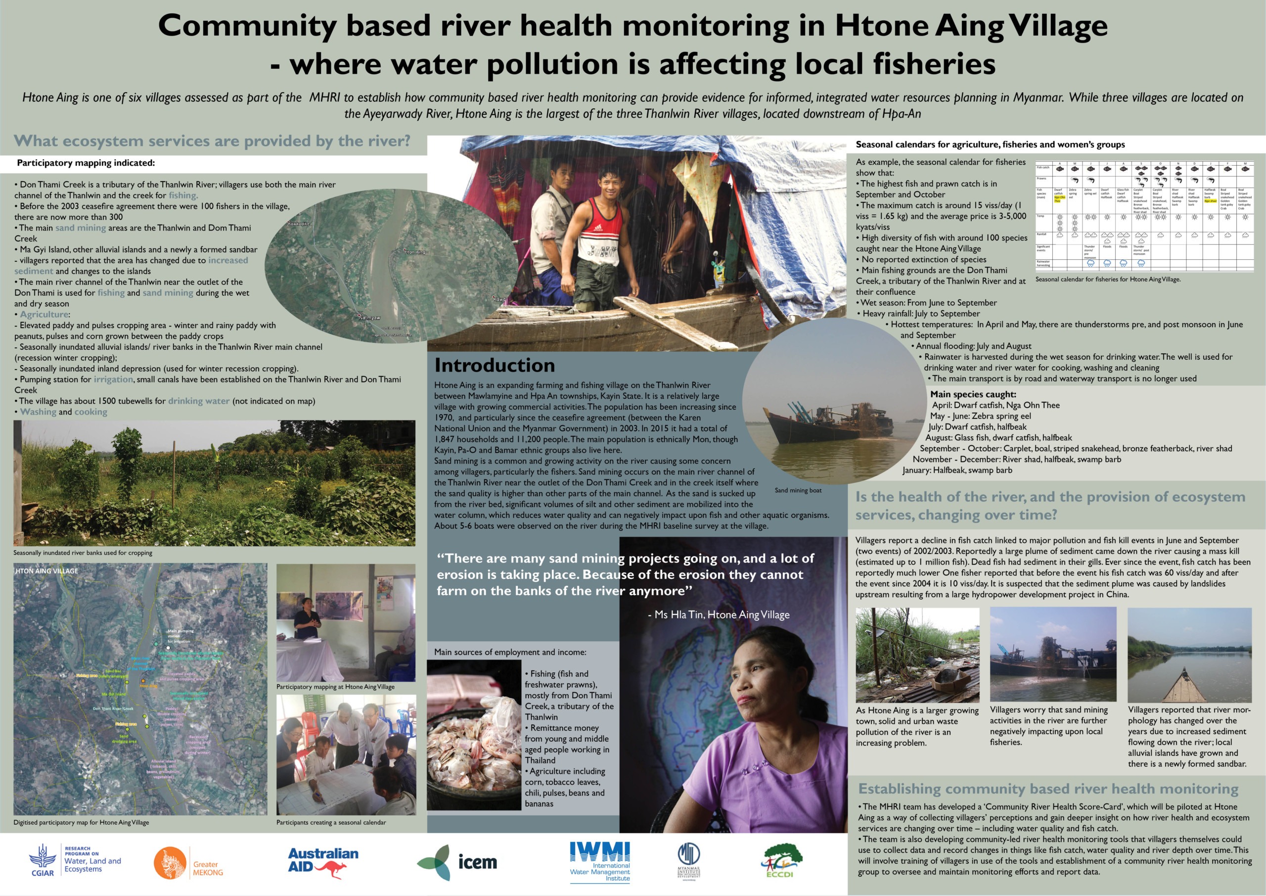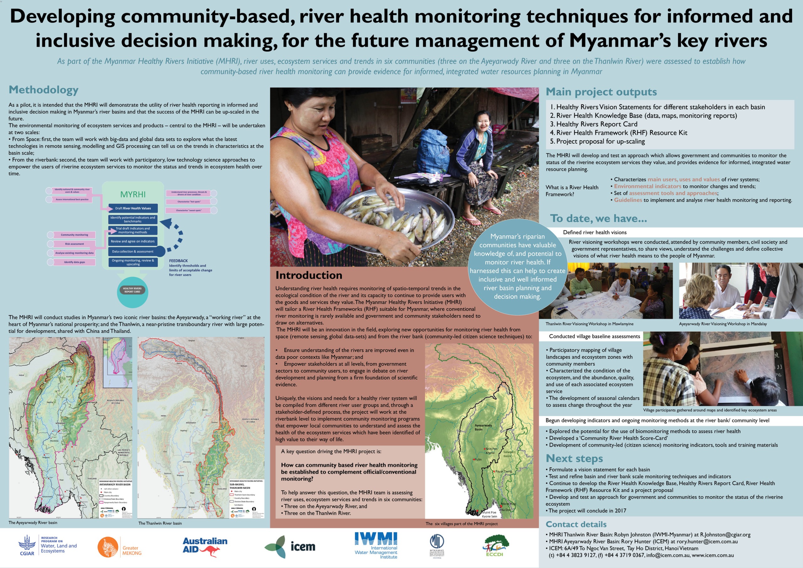 This poster presentation was developed as part of the Myanmar Healthy Rivers Initiative, and displayed at the 2016 Greater Mekong Forum on Water, Food and Energy in November.